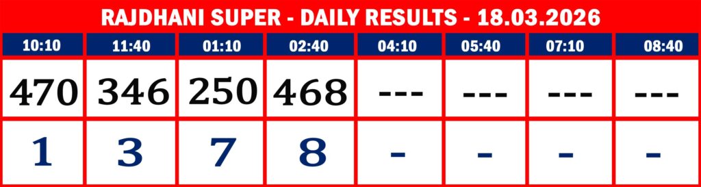 NEXT RESULT – 4:10 PM KEEP PLAYING KEEP WINNING RAJDHANI SUPER